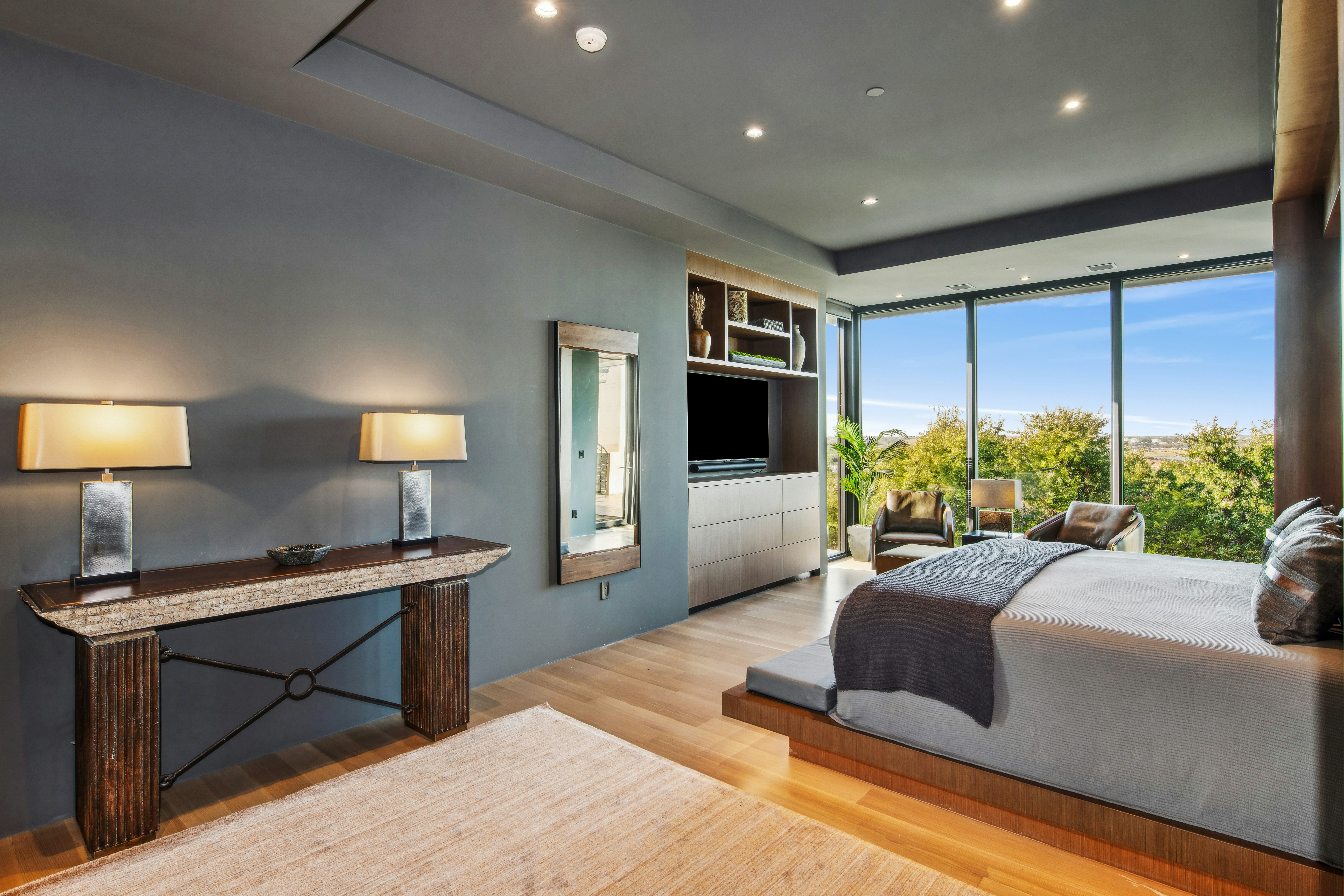 - Proactive UV Protection: Protect your investment in fine art, exotic hardwood floors, and custom upholstery. Our systems can be programmed to lower shades during peak sunlight hours, blocking harmful UV rays while you are away.